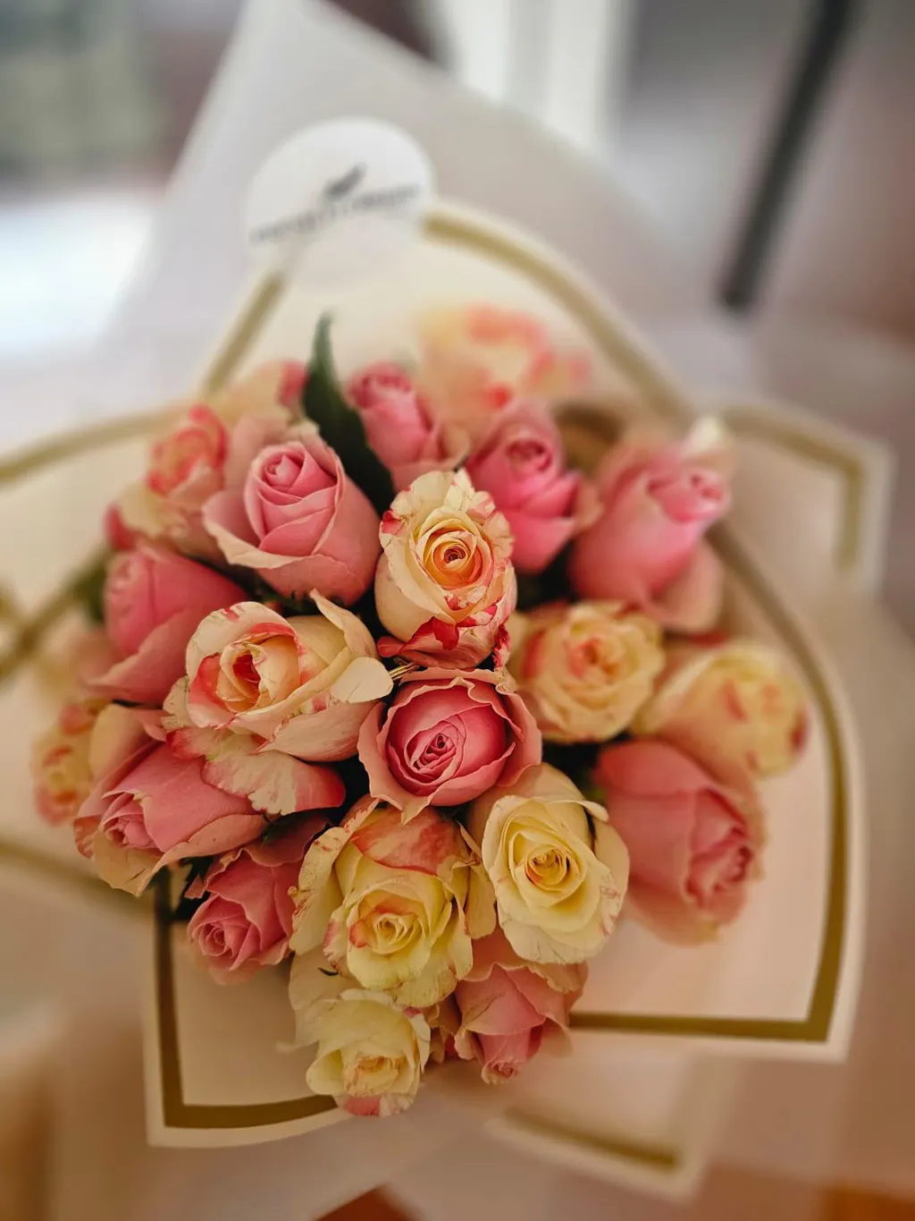 Keep your flowers in a cool area, away from direct sunlight, drafts, and heat sources. Avoid placing them near fruits, as some fruits release ethylene gas, which can shorten the lifespan of your flowers.