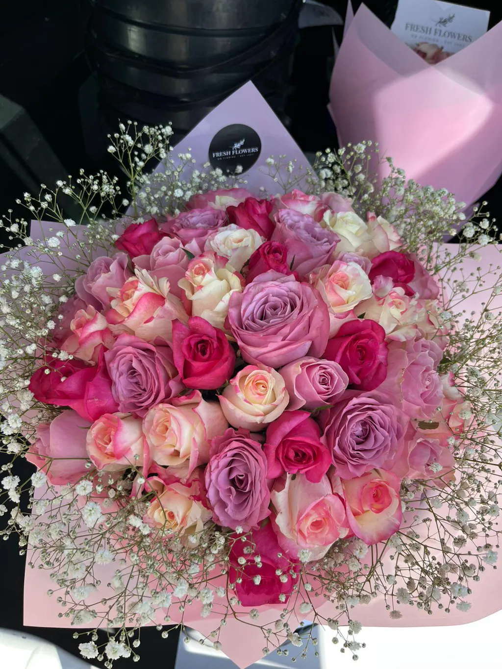 Mixed Pink Roses with White Gyp Bouquet Sale priceR 1,300.00