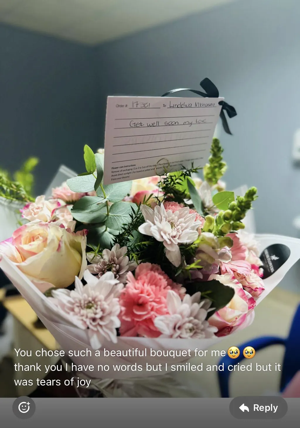 Keep your flowers in a cool area, away from direct sunlight, drafts, and heat sources. Avoid placing them near fruits, as some fruits release ethylene gas, which can shorten the lifespan of your flowers.